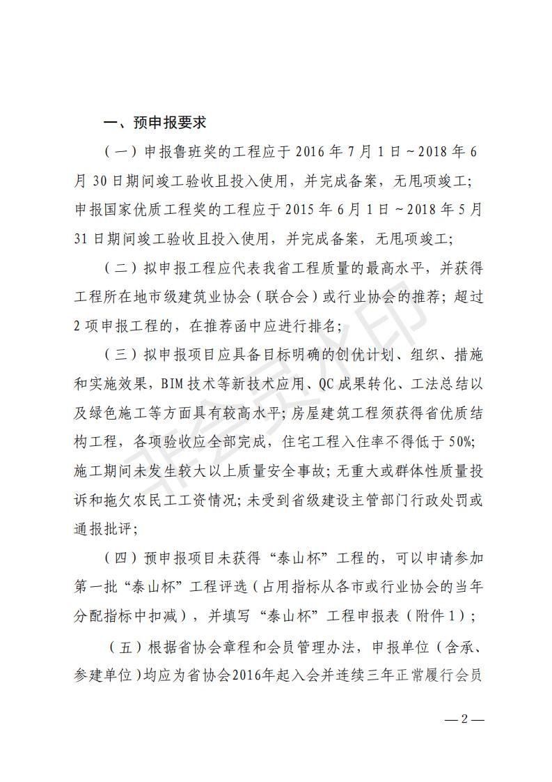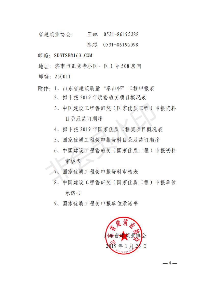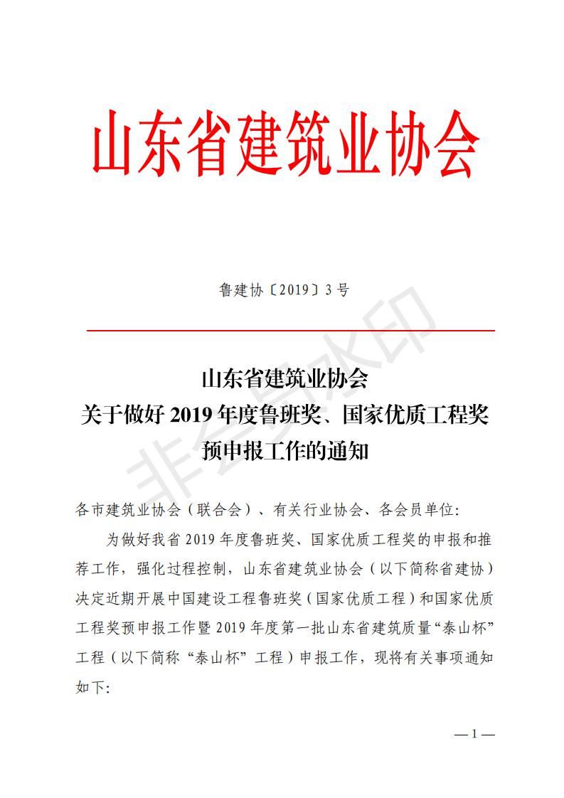 山東省建筑業(yè)協(xié)會 關于做好2019年度魯班獎、國家優(yōu)質(zhì)工程獎 預申報工作的通知