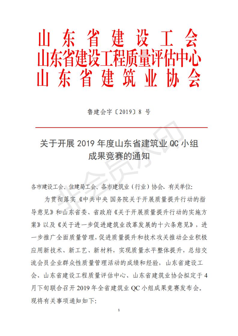 關(guān)于開(kāi)展2019年度                            山東省建筑業(yè)QC小組成果競(jìng)賽的通知