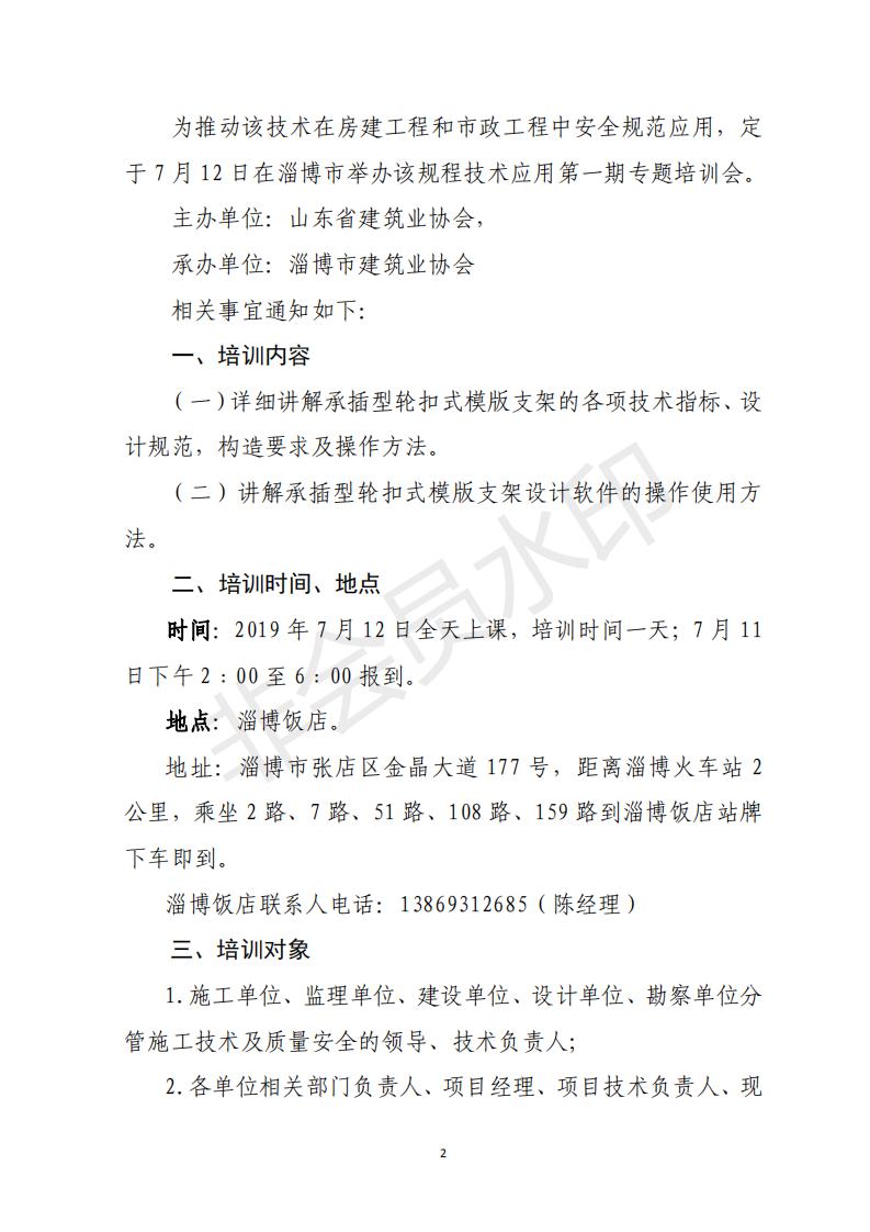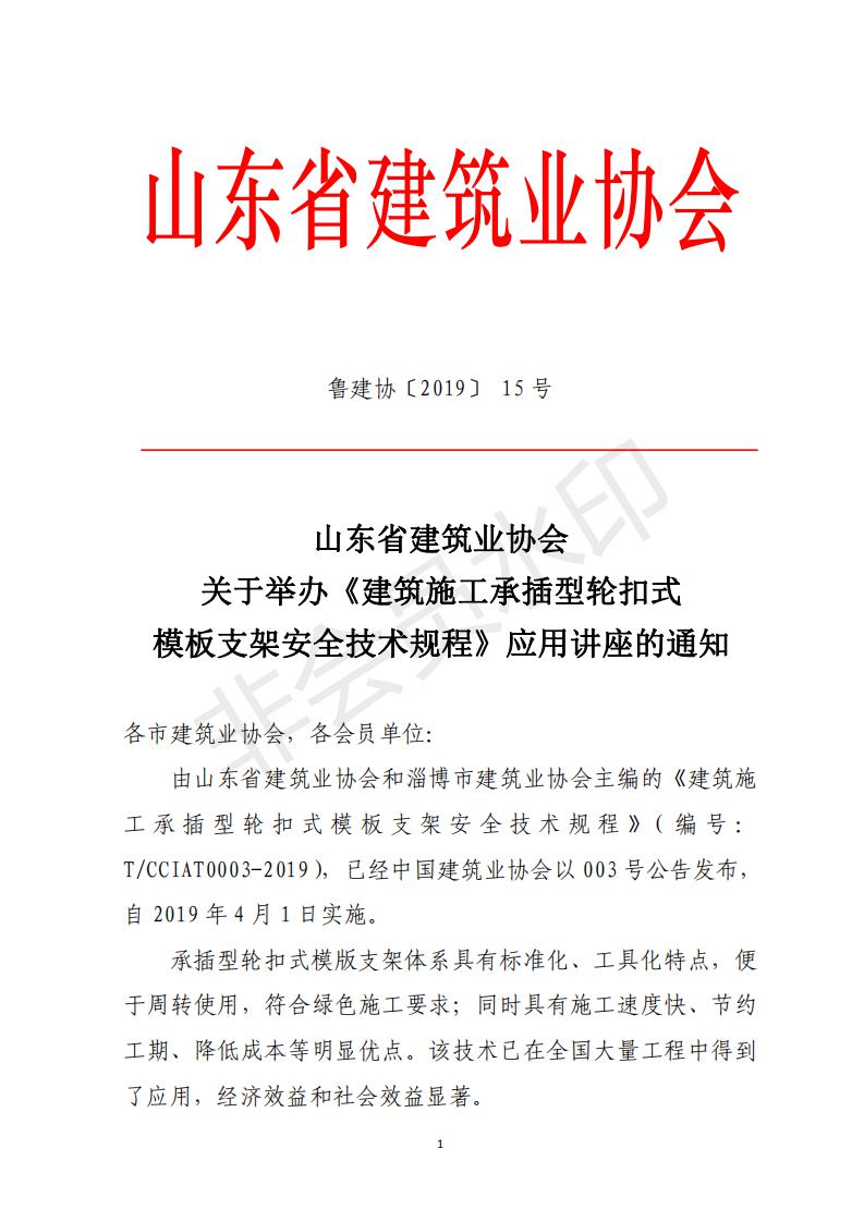 山東省建筑業(yè)協(xié)會(huì) 關(guān)于舉辦《建筑施工承插型輪扣式 模板支架安全技術(shù)規(guī)程》應(yīng)用講座的通知