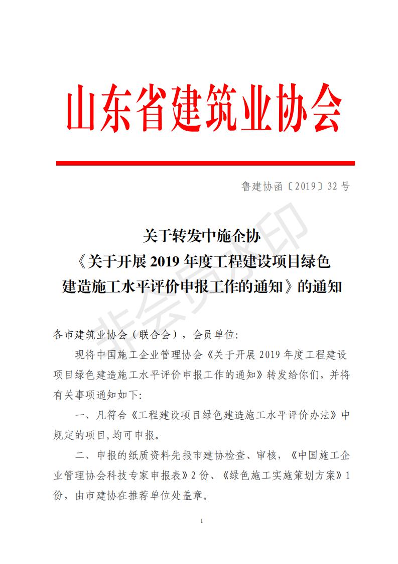 關(guān)于轉(zhuǎn)發(fā)中施企協(xié)《關(guān)于開展2019年度工 程建設(shè)項(xiàng)目綠色建造施工水平評(píng)價(jià)申報(bào)工作的通知》的通知