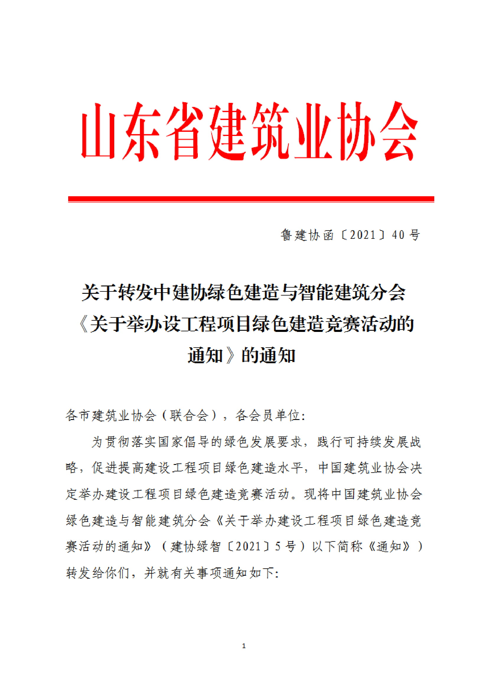 轉(zhuǎn)發(fā)山東省建筑業(yè)協(xié)會(huì)關(guān)于轉(zhuǎn)發(fā)中建協(xié)綠色建造與智能建筑分會(huì)《關(guān)于舉辦設(shè)工程項(xiàng)目綠色建造競(jìng)賽活動(dòng)的通知》