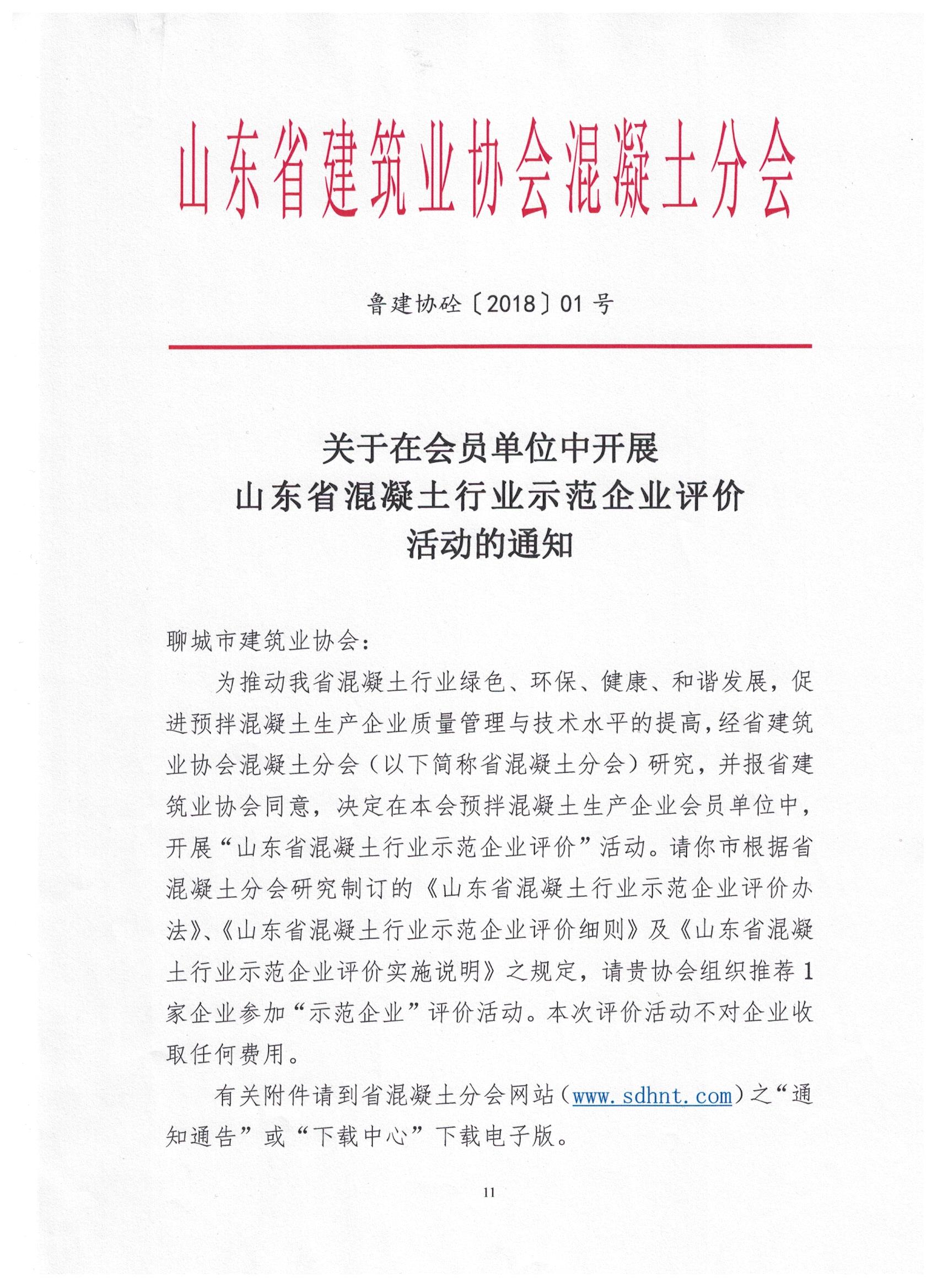 各會(huì)員單位: 山東省建筑業(yè)系會(huì)混凝土分會(huì)正在開(kāi)展“山東省混凝土行業(yè)示范企業(yè)評(píng)價(jià)”活動(dòng),聊建協(xié)將推薦我市企業(yè)參加“示范企業(yè)”評(píng)選。這將對(duì)我市預(yù)拌混凝土生產(chǎn)企業(yè)質(zhì)量管理和技術(shù)水平的提高起到極大的促進(jìn)作用,且獲得“示范企業(yè)”的單位,將具備推薦參評(píng)“中國(guó)混凝土行業(yè)優(yōu)秀企業(yè)”的基本條件?,F(xiàn)將具體參選條件和其他事項(xiàng)公布如下,望達(dá)到標(biāo)準(zhǔn)的企業(yè)積極申報(bào),擇優(yōu)推薦。 一、我市建筑業(yè)協(xié)會(huì)會(huì)員; 二、企業(yè)須為省混凝土分會(huì)3A級(jí)以上的“信用企業(yè)”; 三、通過(guò)GB/T19001-2008(ISO9001-2008)質(zhì)量體系認(rèn)證,評(píng)價(jià)單位與認(rèn)證單位名稱一致,證書在有效期內(nèi)。 四、申報(bào)企業(yè)必須對(duì)申報(bào)材料的真實(shí)、有效性負(fù)責(zé)。凡因提供虛假材料、證明或證書而騙取“示范企業(yè)”榮譽(yù)的,一經(jīng)查實(shí),省混凝土分會(huì)將對(duì)其通報(bào)批評(píng),并取消參加下屆評(píng)價(jià)資格。同時(shí),由市建協(xié)負(fù)責(zé)將其“示范企業(yè)”證書、牌匾收回,取消其稱號(hào)。