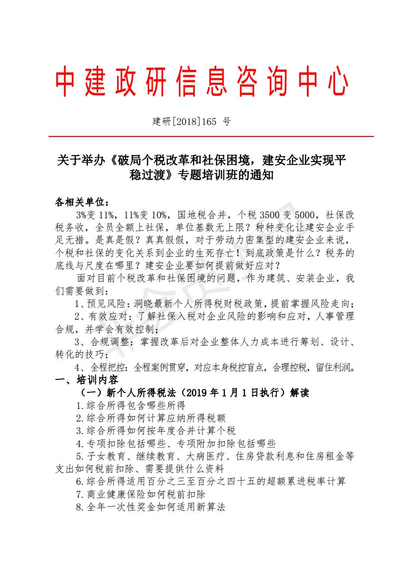 關(guān)于舉辦《破局個稅改革和社保困境,建安企業(yè)實(shí)現(xiàn)平穩(wěn)過渡》專題培訓(xùn)班的通知