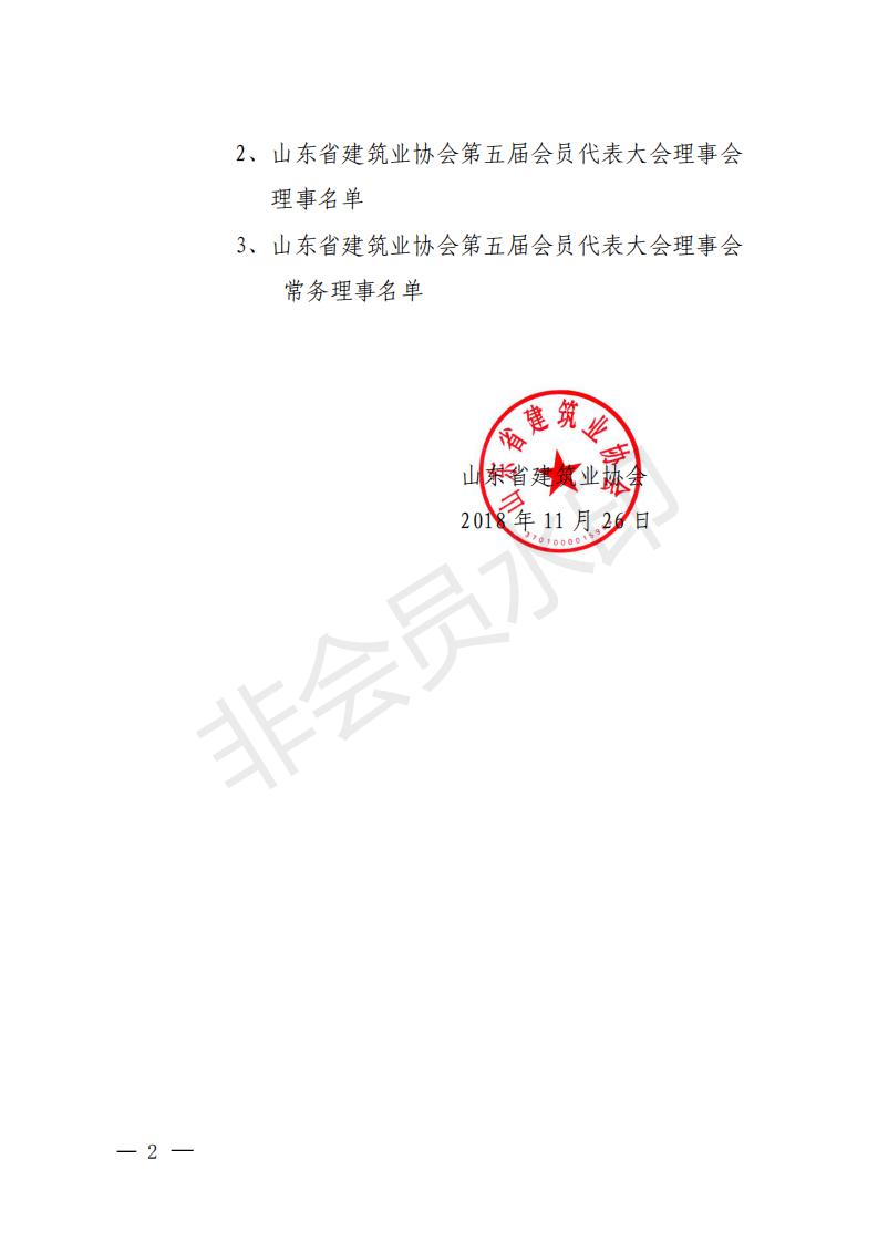 關于公布山東省建筑業(yè)協(xié)會第五屆理事會會長、 副會長、秘書長、常務理事、理事,監(jiān)事會監(jiān)事長、監(jiān)事名單的通知